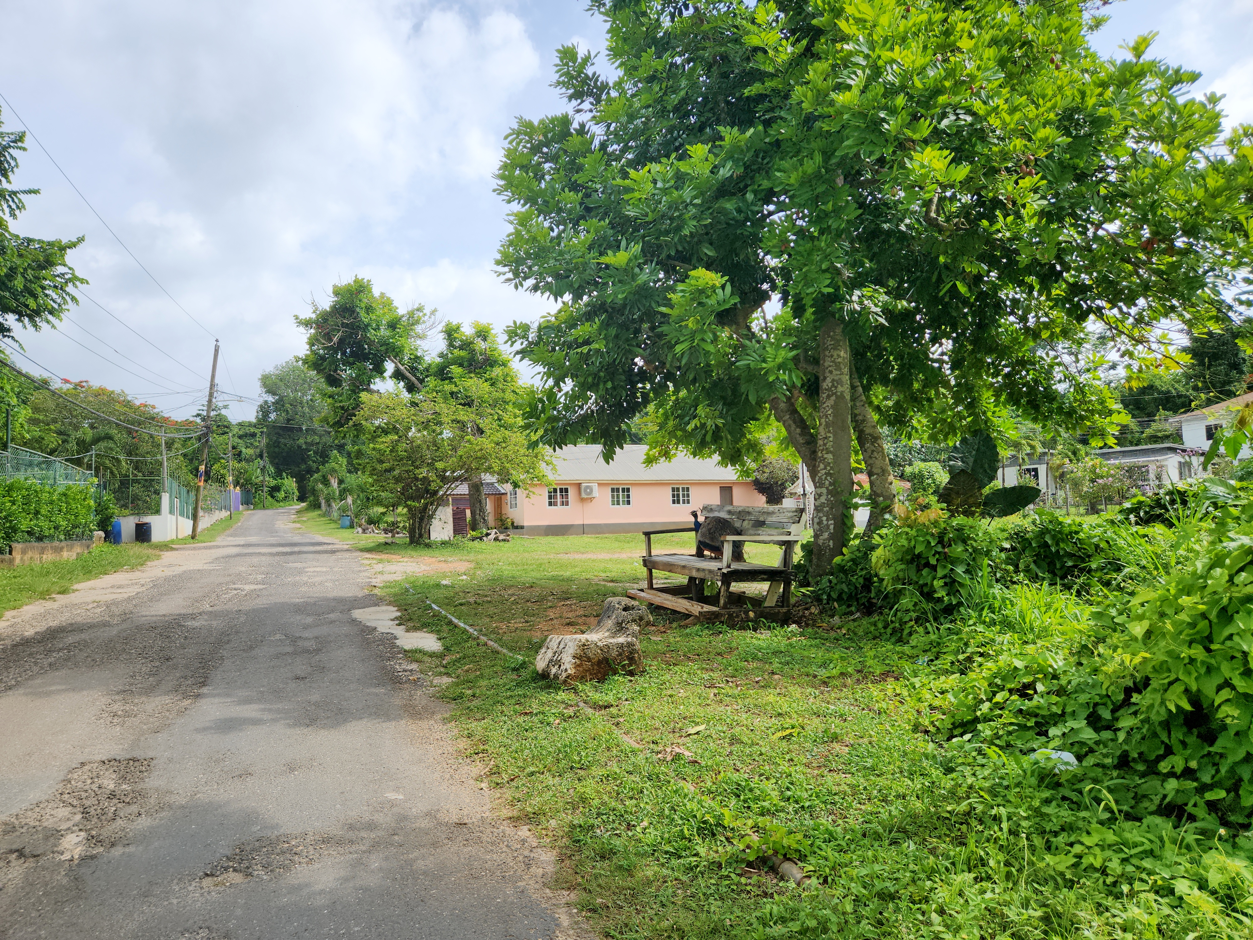 Свернув с основной дороги, идущей вдоль берега, я оказался на обычной асфальтированной сельской дороге. Из-за особенностей рельефа большинство дорог вглубь острова идут в гору. После очередного подъёма я увидел деревянную лавочку в тени дерева: