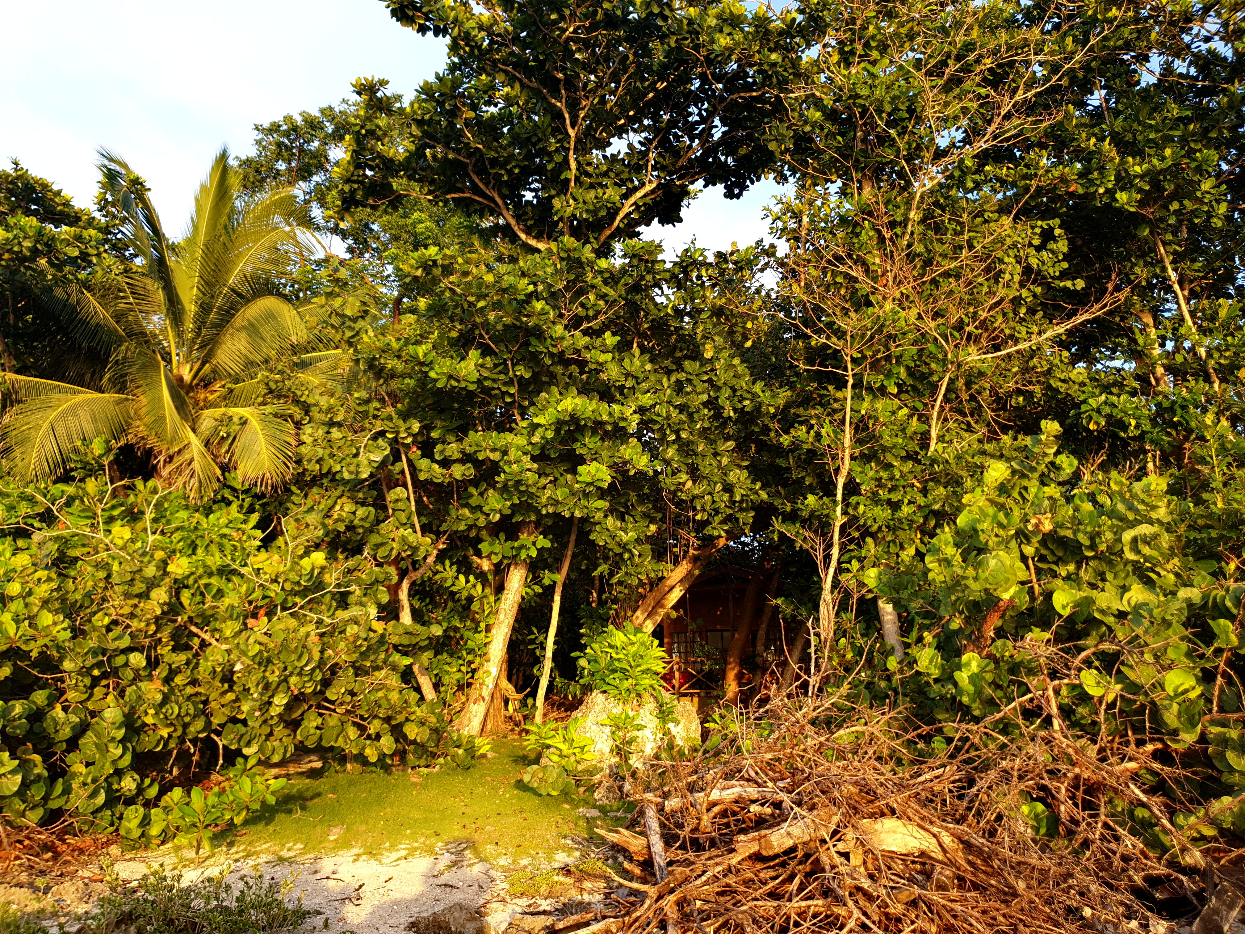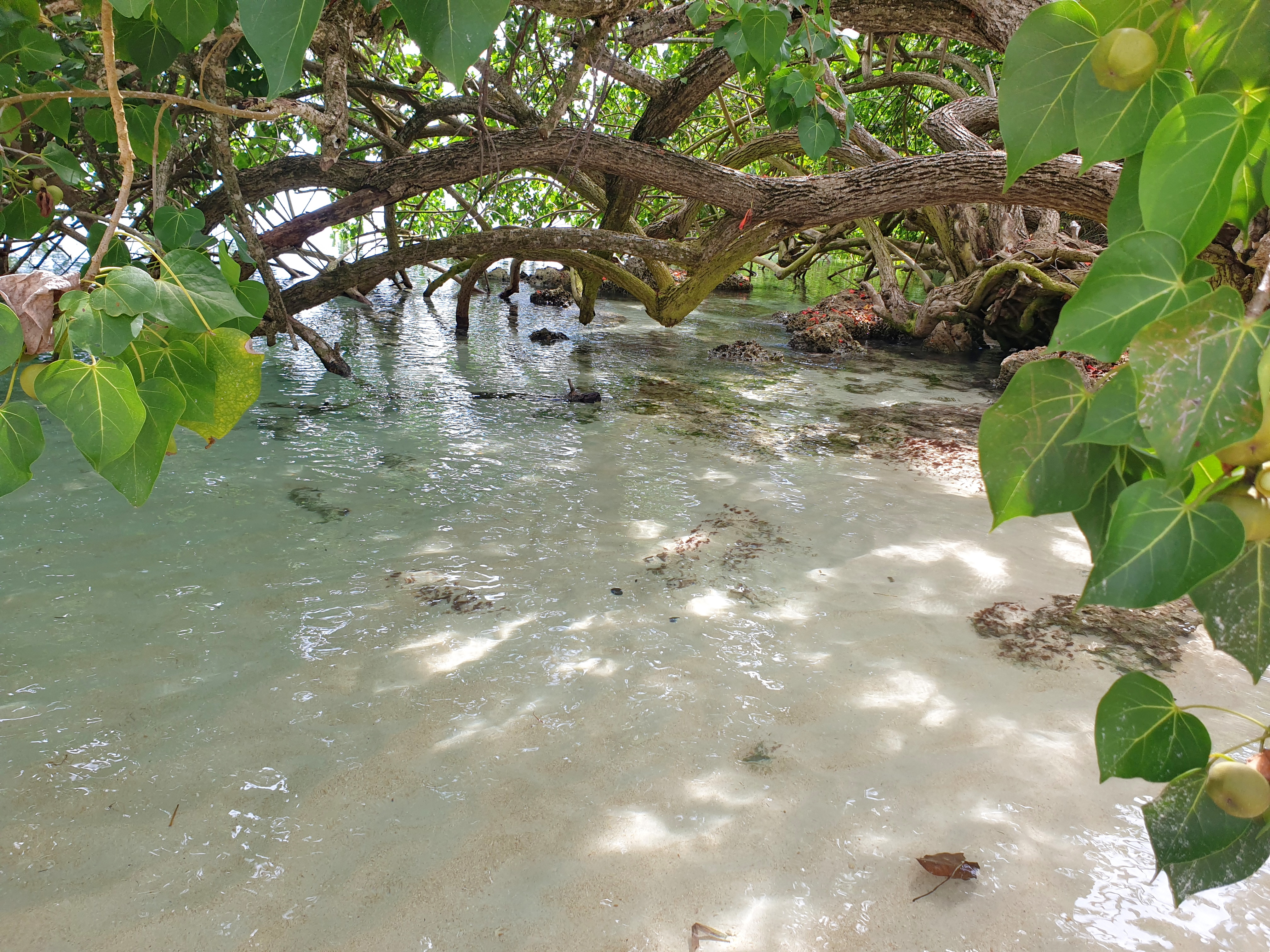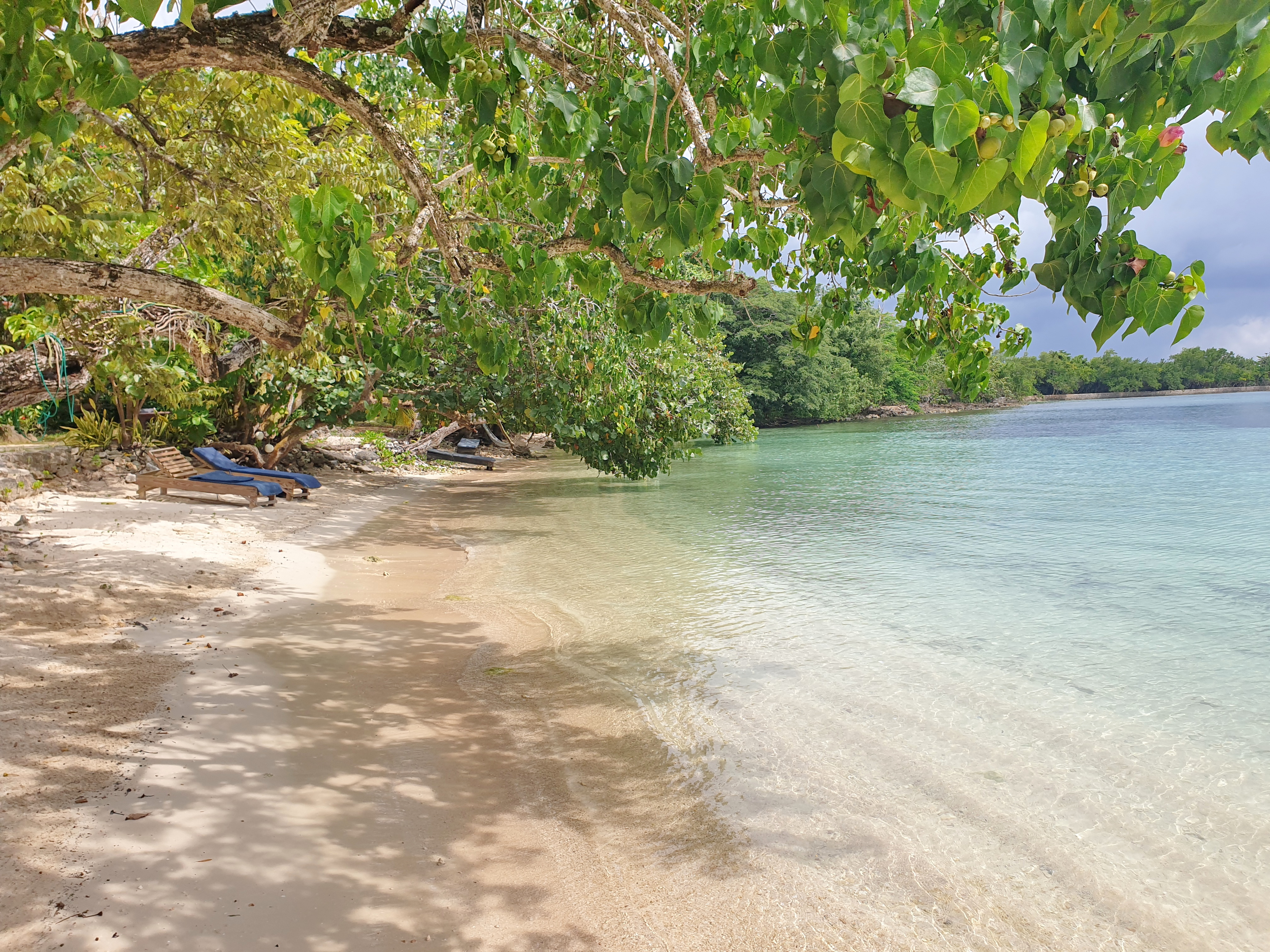 Есть лежаки, столики, пляжный душ, кафе и нормальный туалет. Есть даже гамак прямо у воды (виден на предыдущем фото). Можно расположиться в тени или на солнце. Но самое приятное — мы оказались единственными посетителями. Прямо тропический рай за 500р.