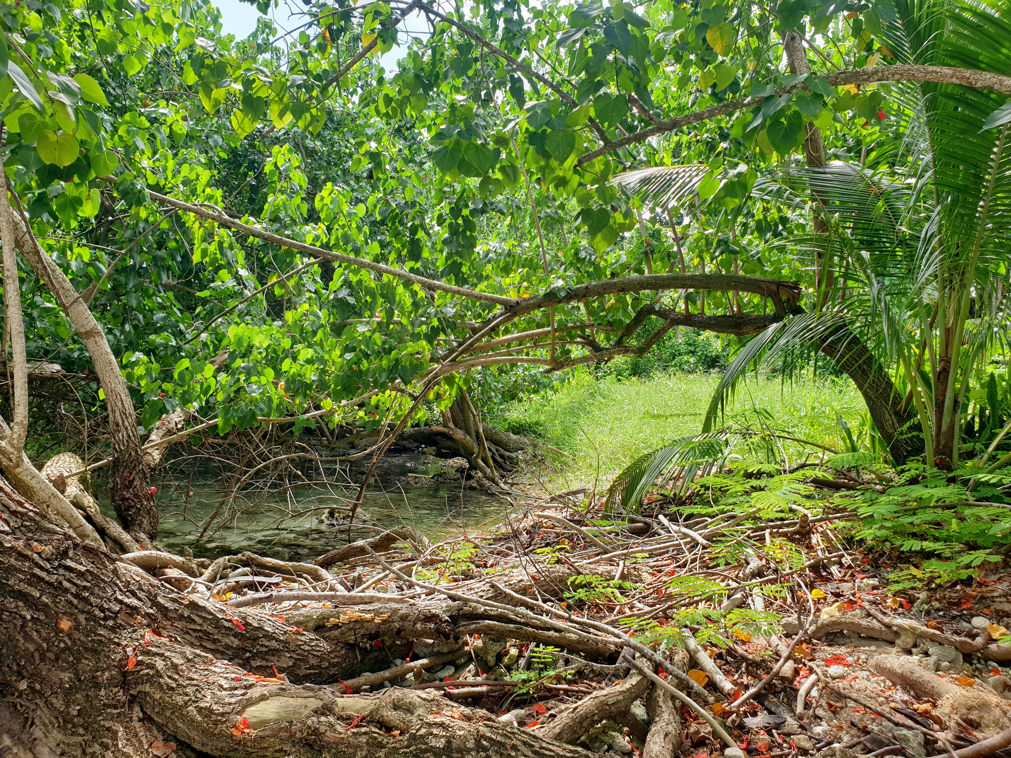 По мнению учёных, остров появился сотни миллионов лет назад в результате вулканической активности на стыке тектонических плит. За эти миллионы лет на большей части лавы образовались известняковые отложения, которые составляют большую часть острова в наши дни. Конечно, это всё скрыто под толстым слоем органики — мы же в тропиках, тут всё растёт хорошо.
