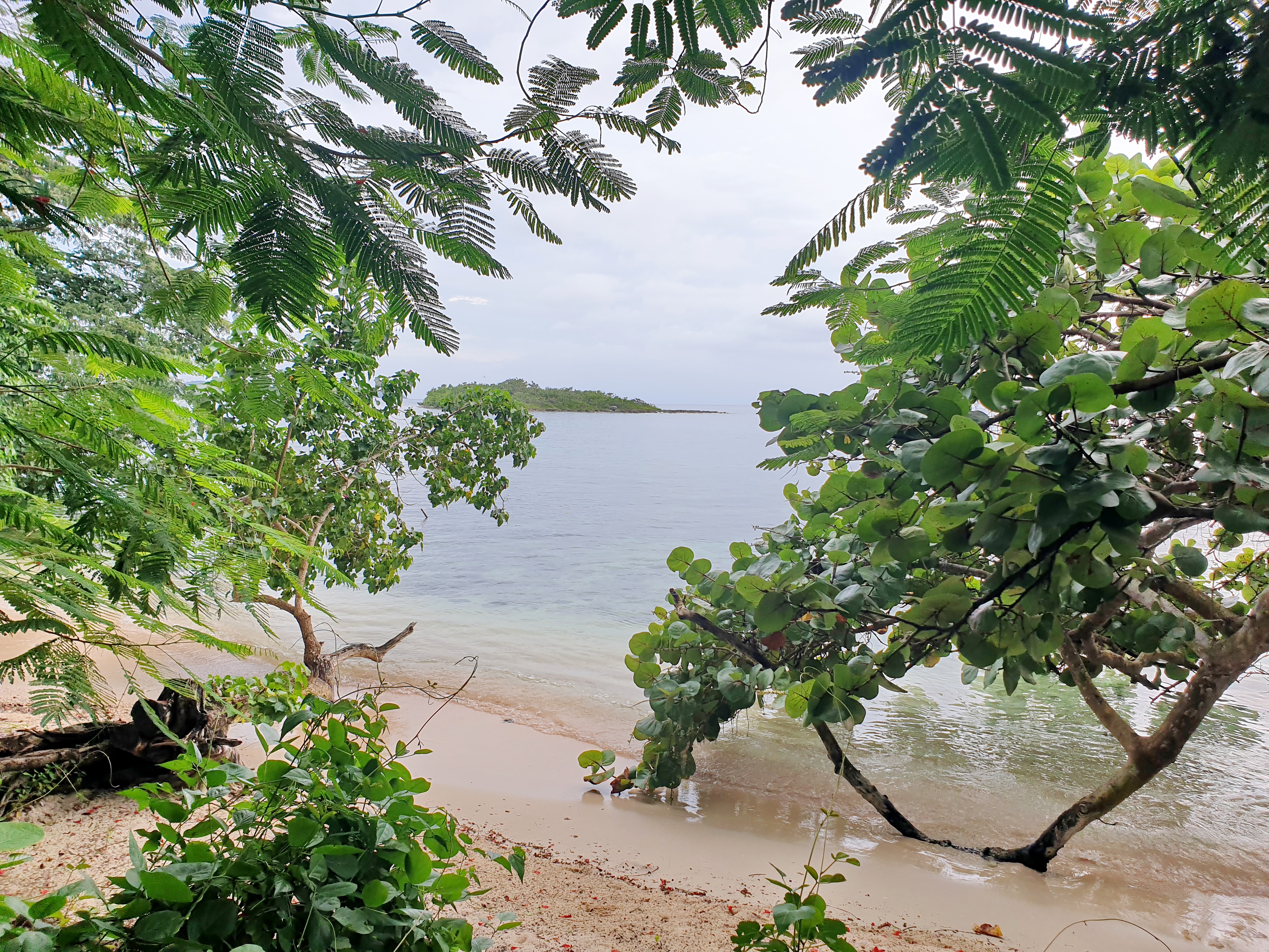 Маленький и очень уютный. На фото видна только половина пляжа — он продолжается справа под деревьями. Вот так:Возможно, в разгар сезона он более оживлённый и менее спокойный, но сегодня он именно то, что мне надо.
