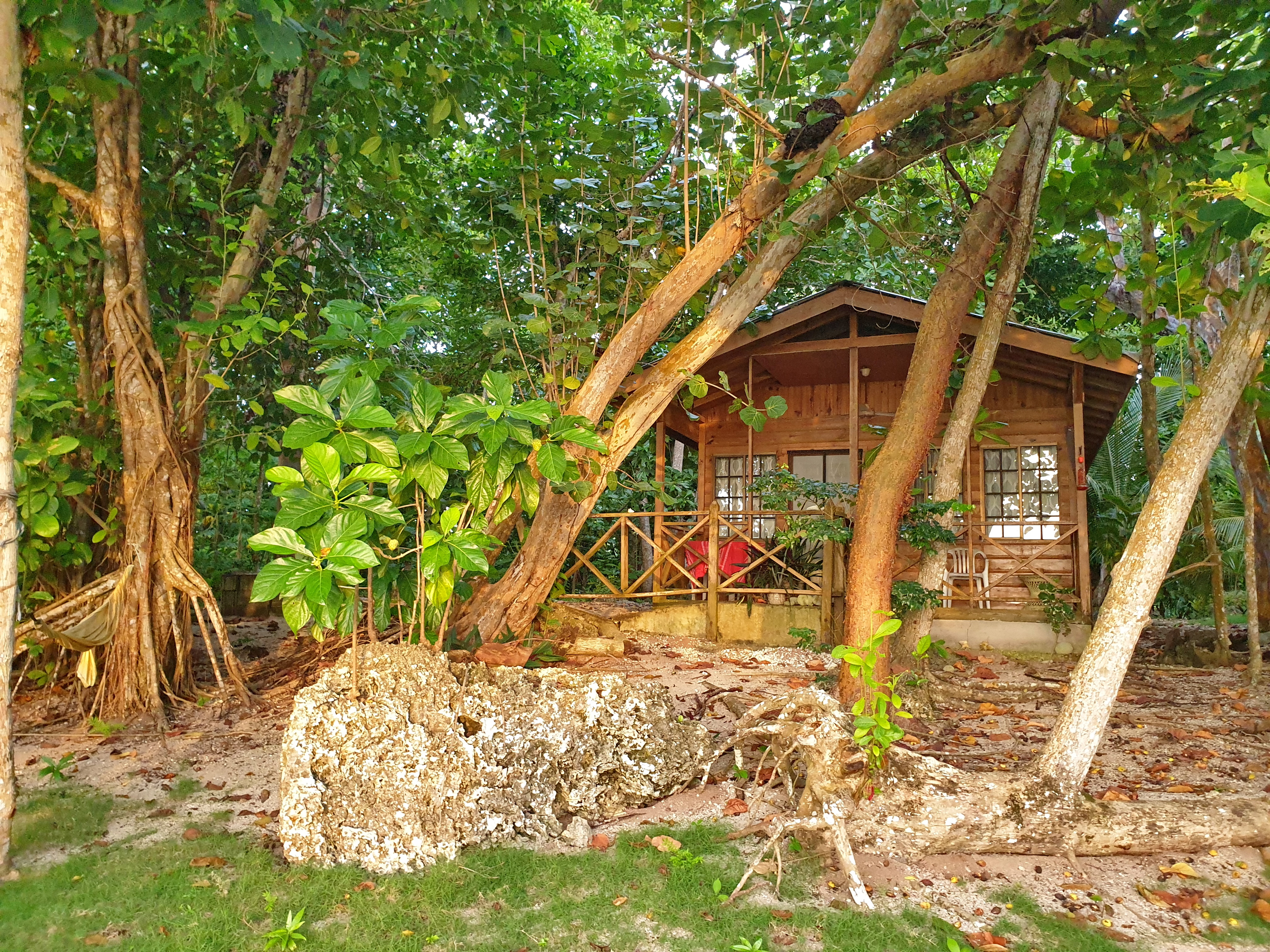 За беседкой есть дорожка к внешней стороне бухты, мимо уютных домиков для туристов: