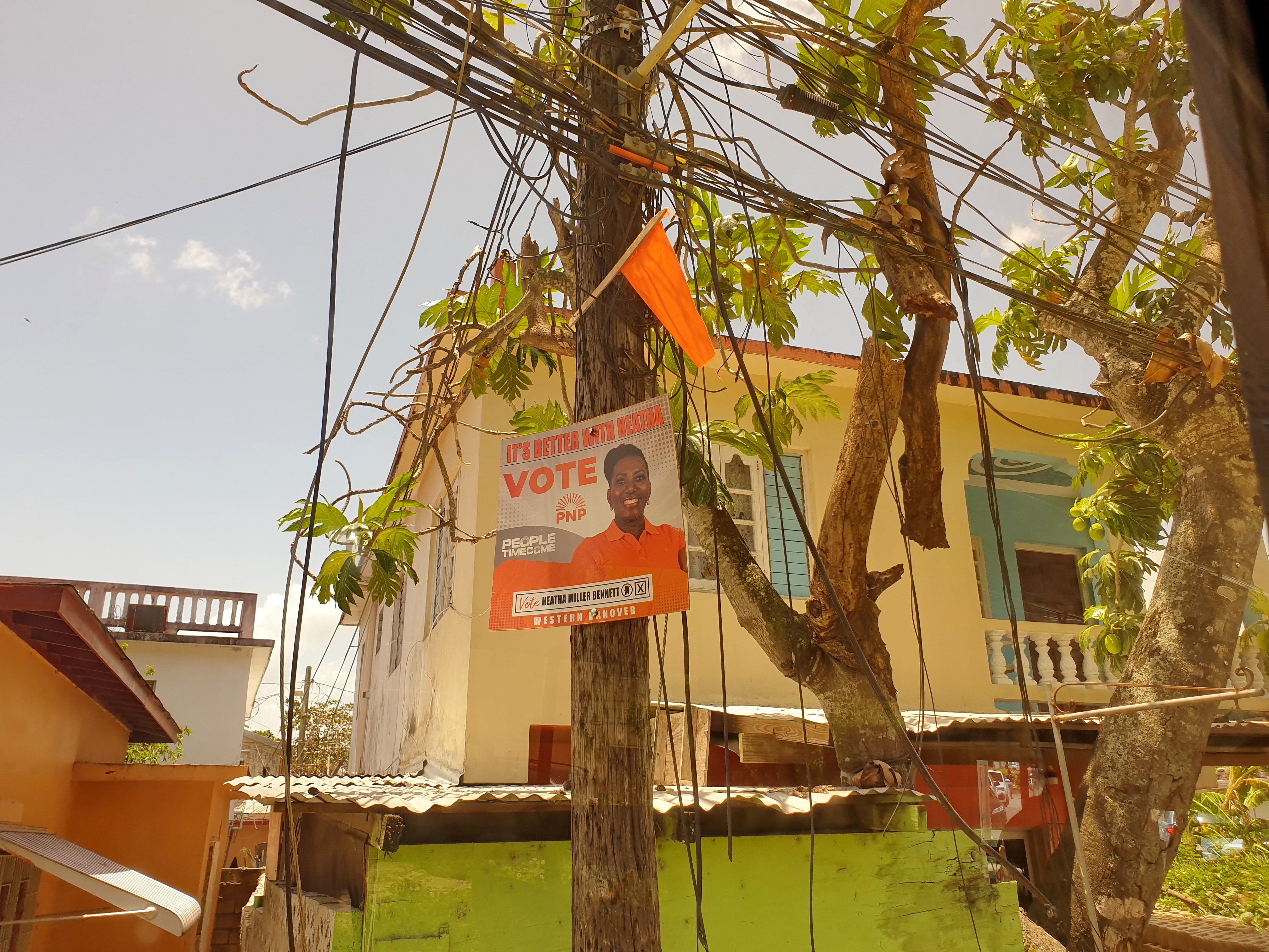 На Ямайке две основные политические партии: “Оранжевые” и “Зеленые”. Скоро выборы, а на фото оранжевый флажок на столбе — значит, этот район поддерживает Оранжевых. Тут важно упомянуть, что, несмотря на всю дружелюбность, местные порой остро реагируют на некоторые моменты. Например, если кто-то поддерживает другую партию. Слышал историю, как таксист, везущий туристов, стал очень переживать, когда заехал в другой район. Поездка прошла без происшествий, но водитель очень быстро уехал.