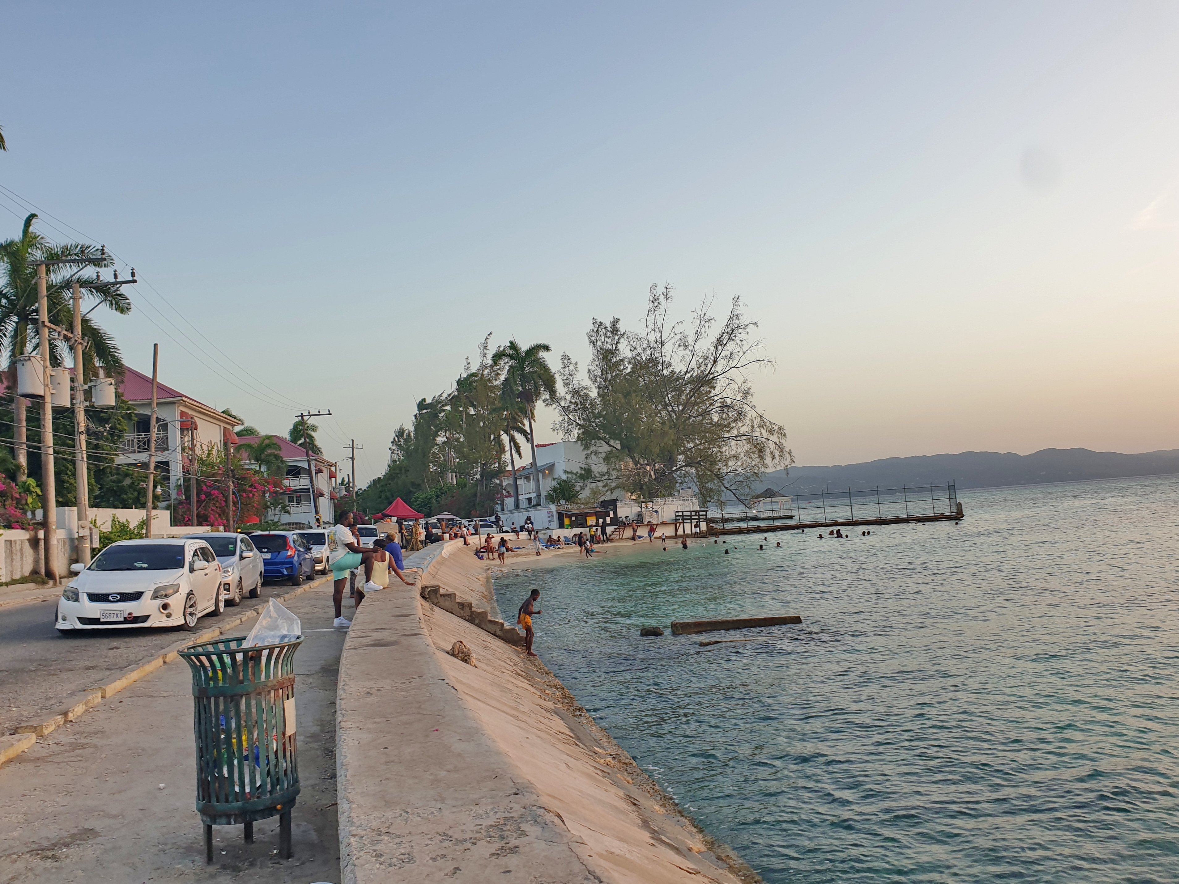 Облаков почти не было, и закат мне показался скучным.В этот вечер в городе проходил первый день Reggae-фестиваля Reggae Sumfest 2025. Точнее, фестиваль уже шёл всю неделю, но это были мелкие активности в городе, а сегодня первый день музыкальной части на большой сцене. О фестивале я узнал случайно ещё до поездки и решил, что стоит туда заглянуть, но решил пойти только на второй день (самый главный). Поэтому в городе сегодня вечером намечается столпотворение, а у меня отдых.
