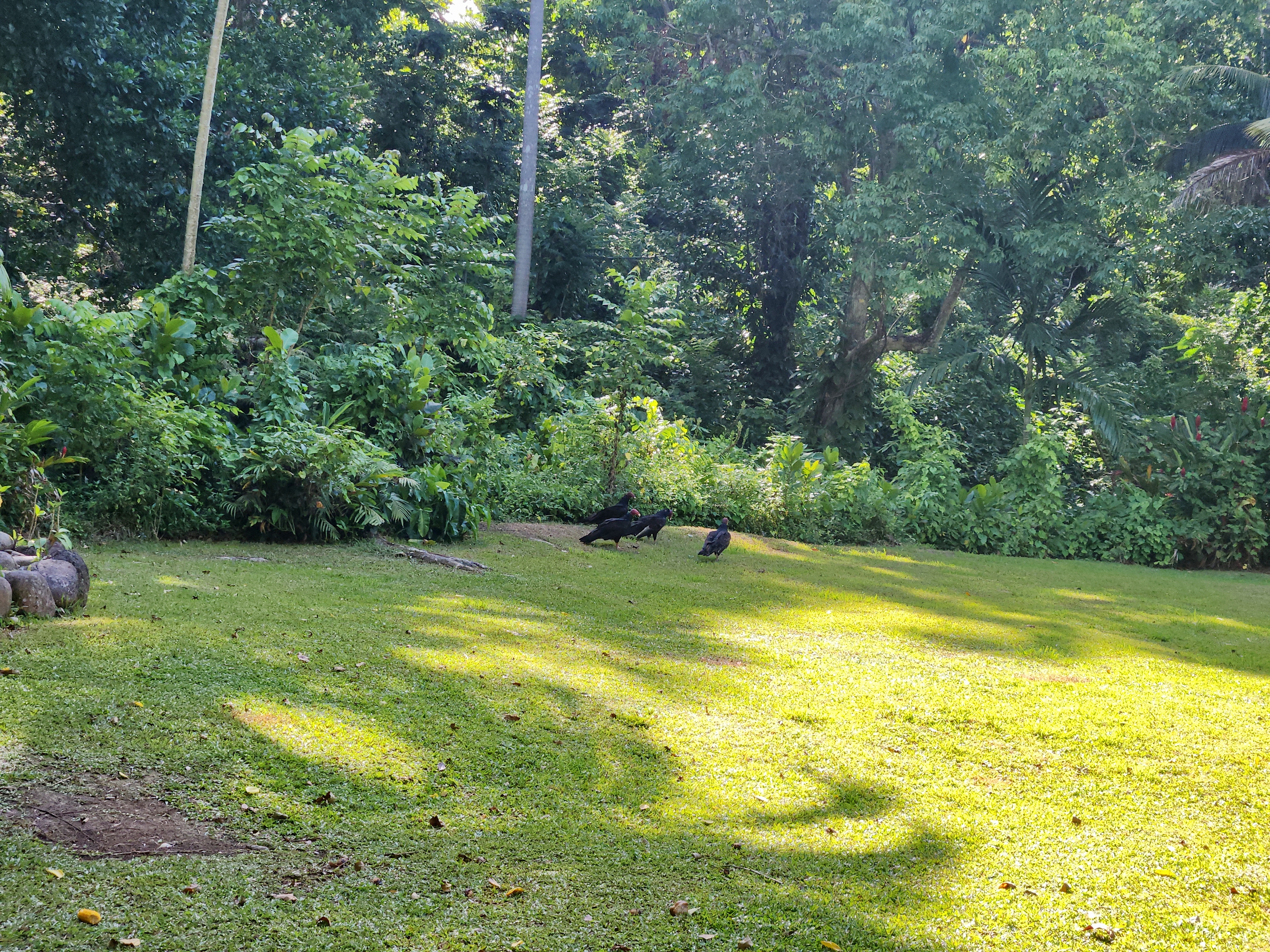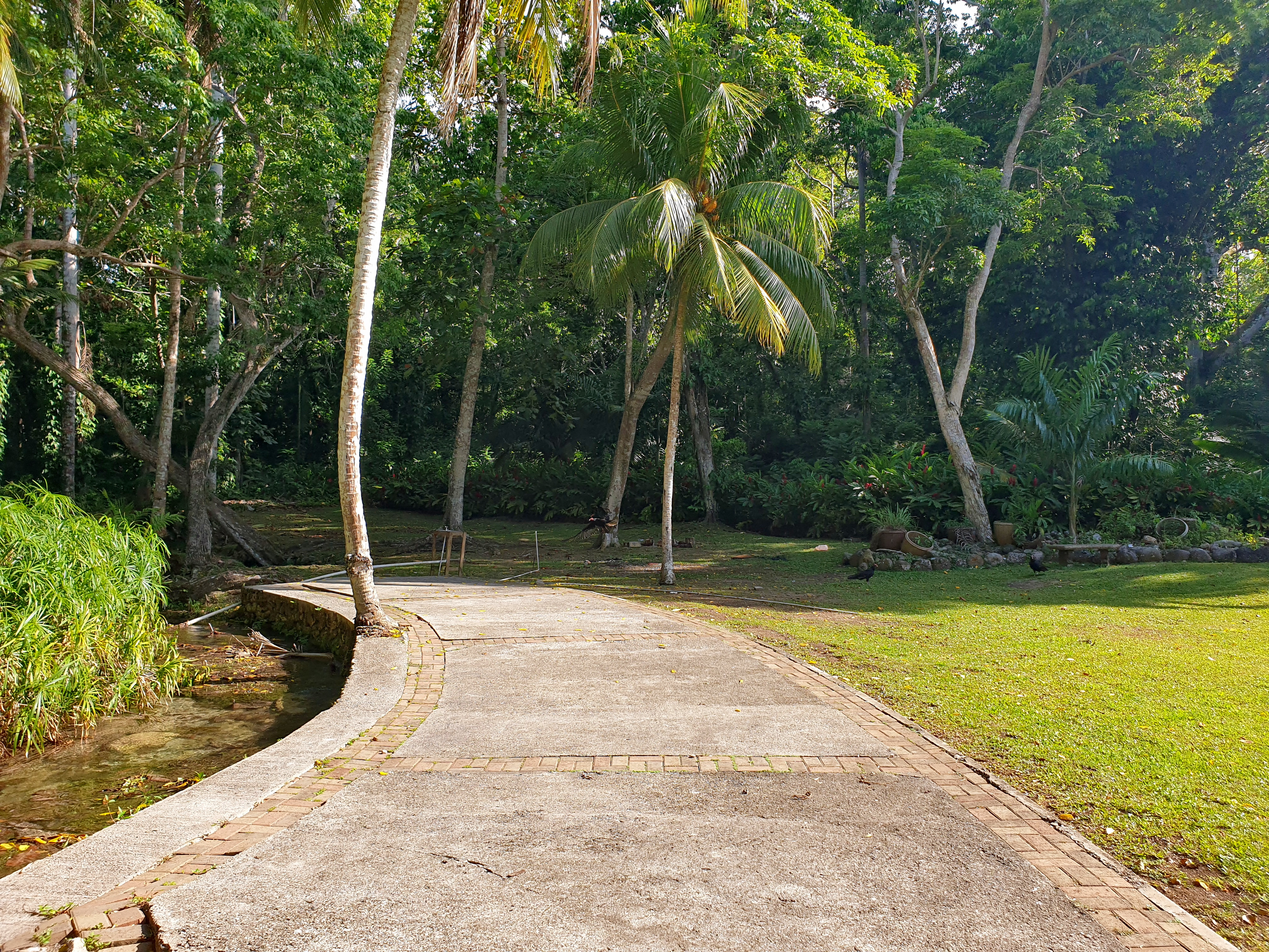 Судя по карте, тут даже есть короткие тропы для прогулки (хайкинга). К сожалению, тропинка на фото ведёт к ЗипЛайну (скоростной спуск с дерева по наклонной верёвке), а где тропинки для хайкинга я так и не понял. На мои расспросы местные работники стали говорить что-то непонятное про гида… Ну и ладно…Вернёмся к шпионскому сюжету. Как и полагается в подобных историях, в определённый момент раздаётся телефонный звонок или приходит сообщение, и секретный агент вынужден незаметно отлучиться по очень важным и очень секретным делам. Поэтому пока супер агент спасает мир (думаю, по сценарию обязательно должен быть эффектный спуск по Зиплайну), я, как ничего не подозревающий персонаж, гуляю по парку, отвлекаюсь на ярких представителей местной фауны в тени пальмы: