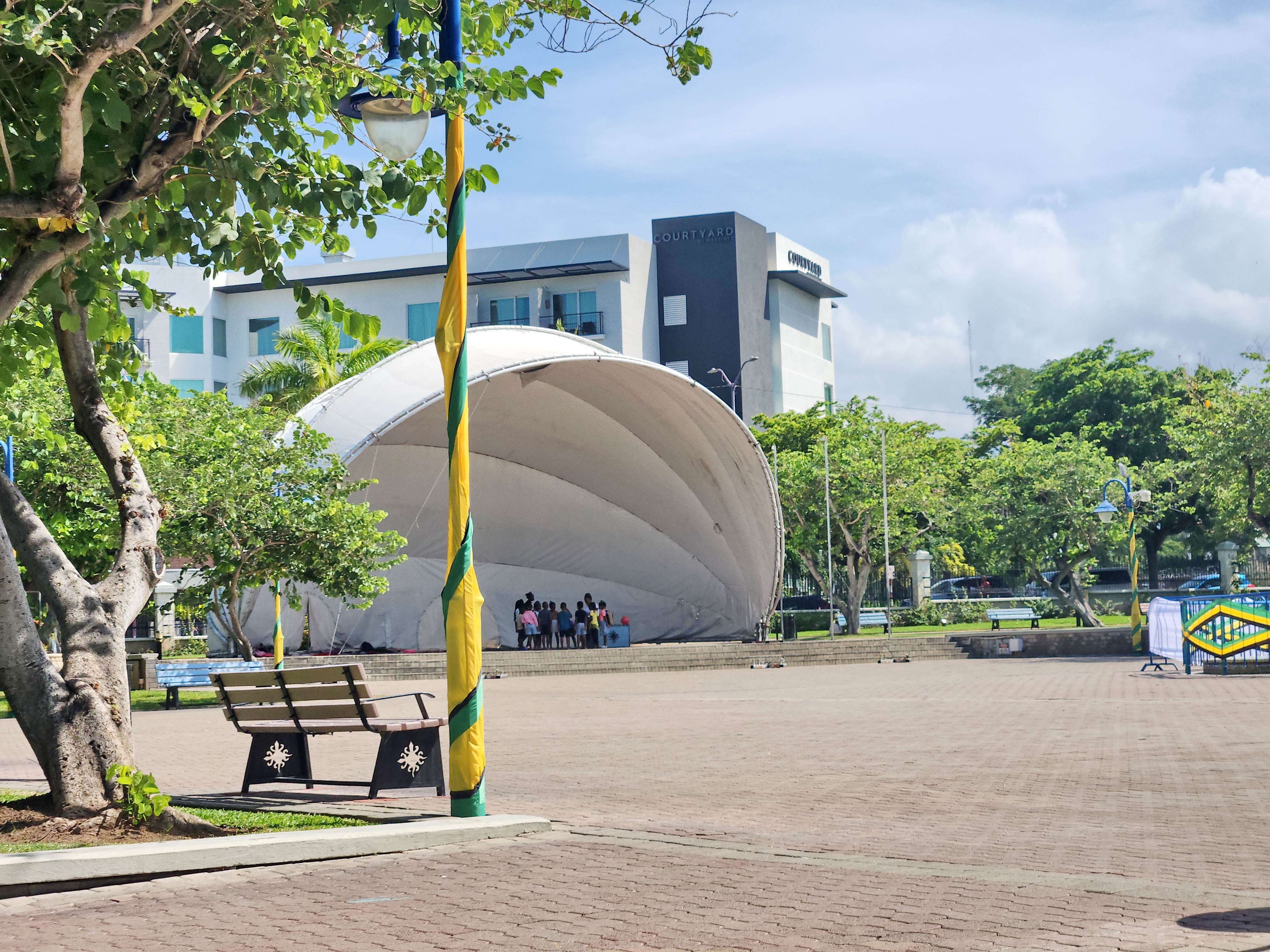 Я тоже нашёл лавочку в тени и стал наблюдать, наслаждаясь ямайским солнцем.Детский сад
