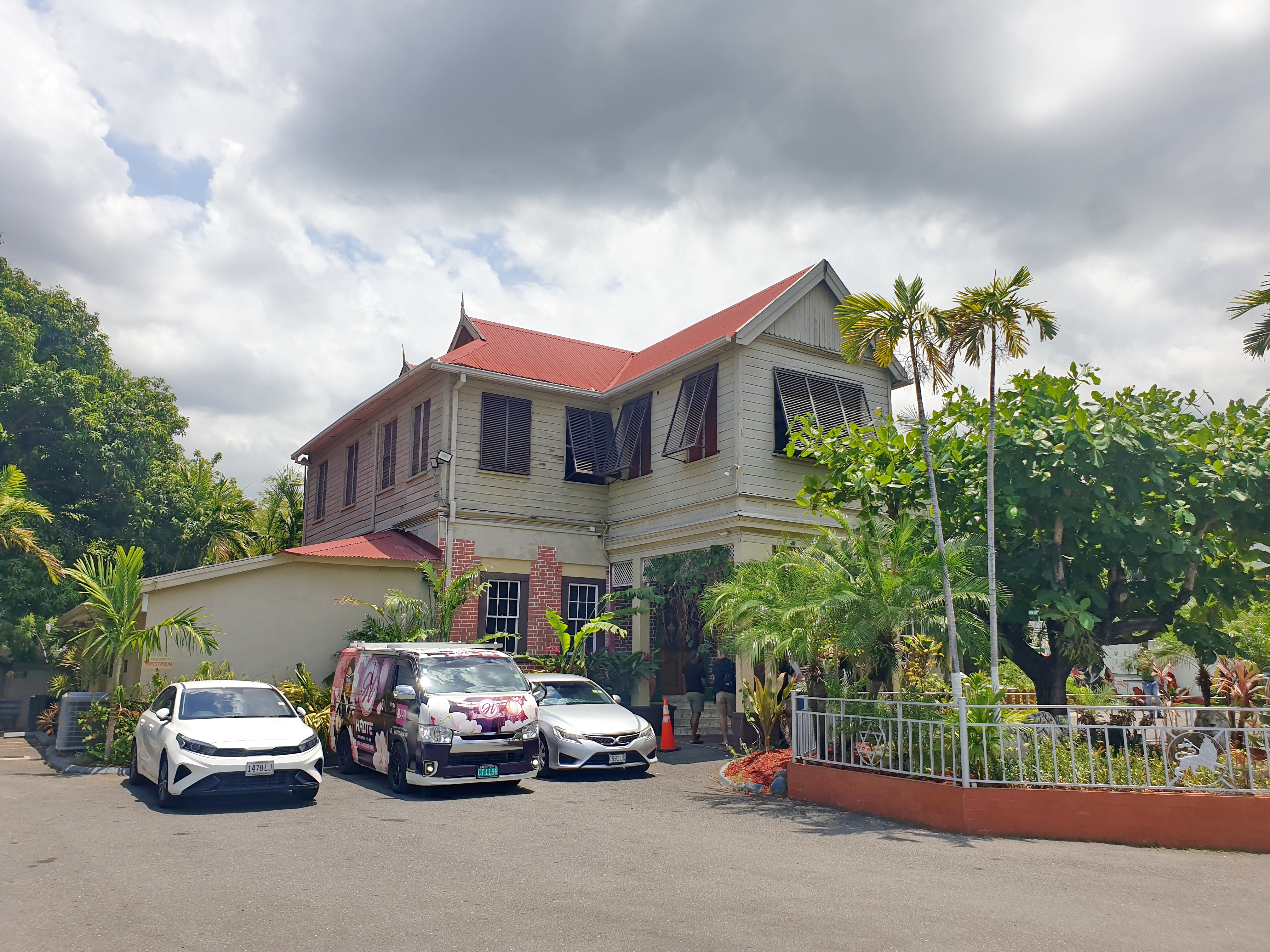 Большая клумба перед входом мешает сделать фото всего дома. Но мне удалось найти удачный ракурс, чтобы сфотографировать дом так, чтобы он был похож на тот, что был в фильме “Боб Марли: Одна любовь”: