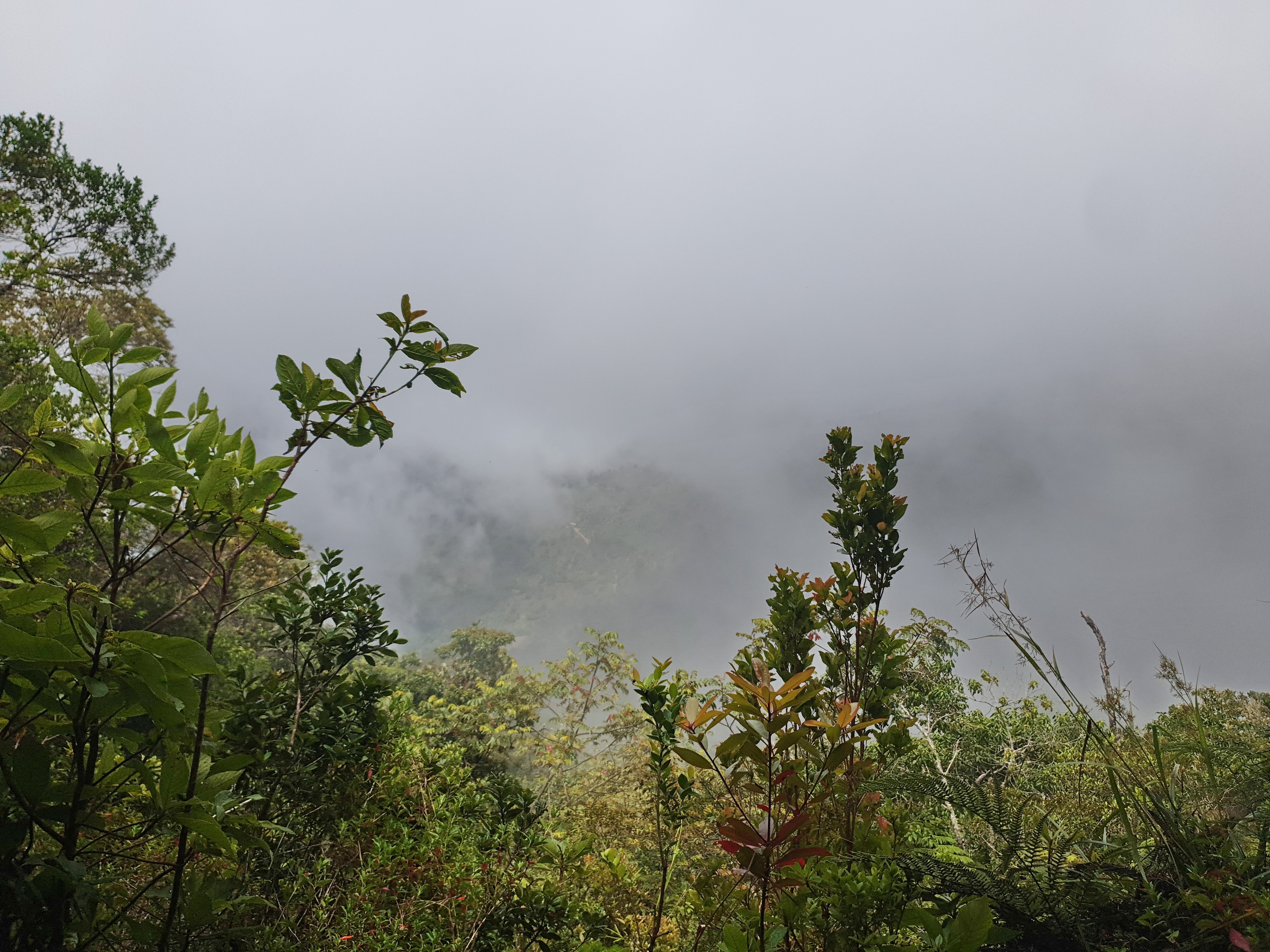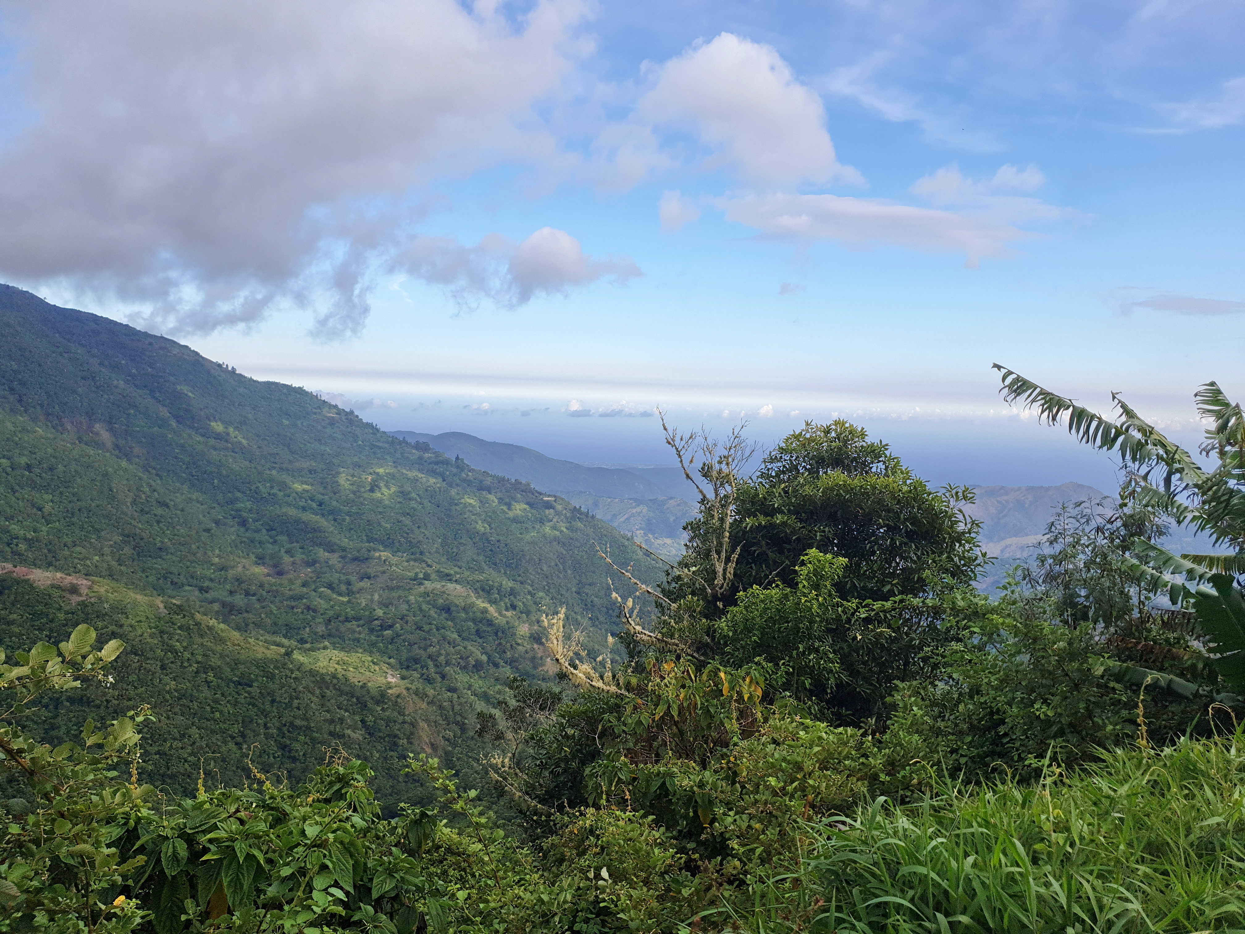 Согласно интернету, июль самый сухой и самый солнечный месяц на Ямайке. Несмотря на это, я попал под тропический ливень в первый день, и сейчас погода не очень солнечная. Я, конечно, понимаю, что я на вершине горы в облачном лесу, но считается, что именно отсюда в хорошую погоду можно увидеть как северное, так и южное побережье острова. А в по-настоящему ясный день можно увидеть очертания острова Куба, расположенного в 210км (130 миль) отсюда.
