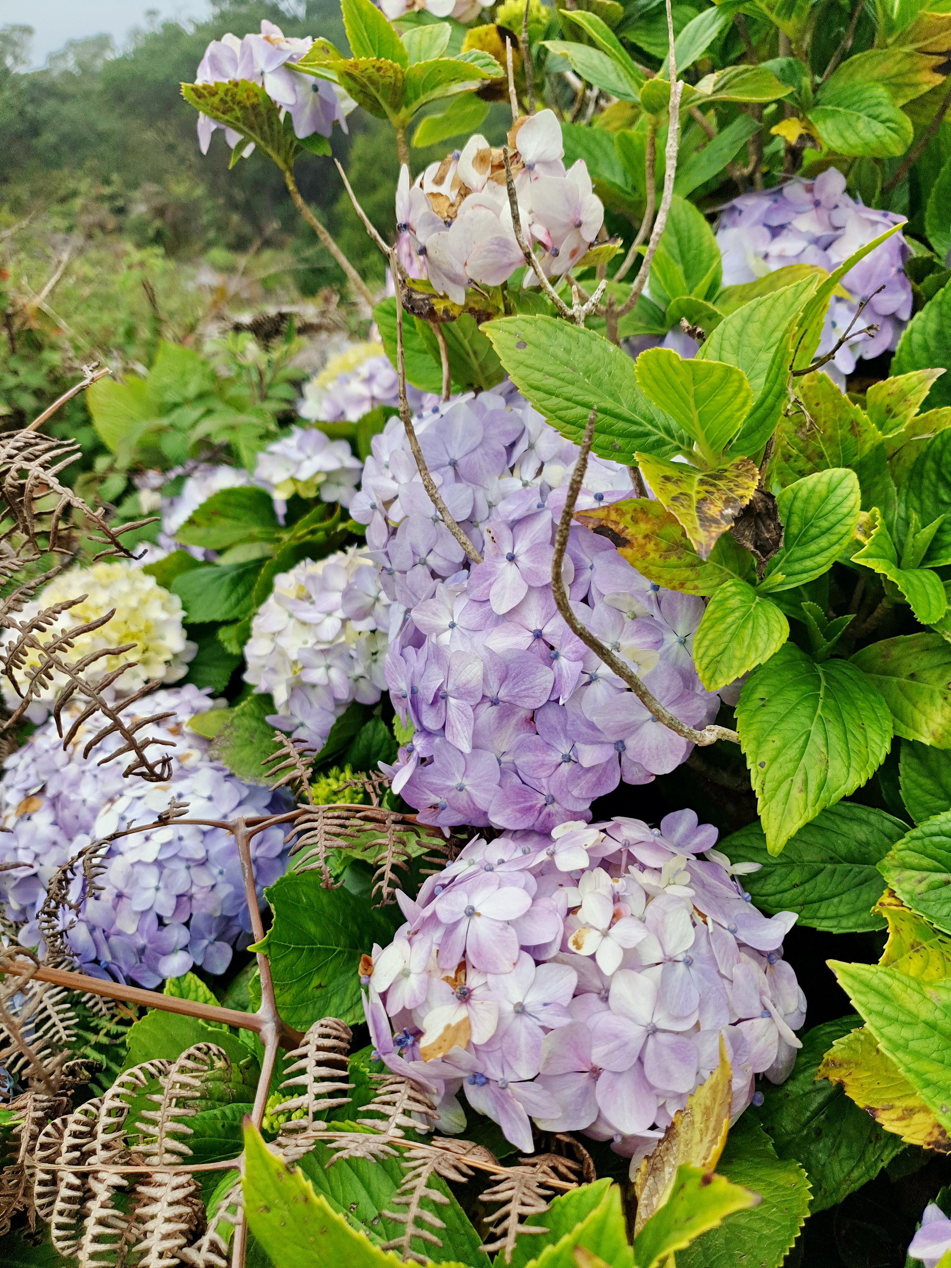 Hydrangea macrophylla. Такая же росла на вершине, но тут она более голубая, а на вершине была более сиреневая.Окраска цветов меняется в зависимости от кислотности почвы: от голубого в кислой среде до розового в щелочной.