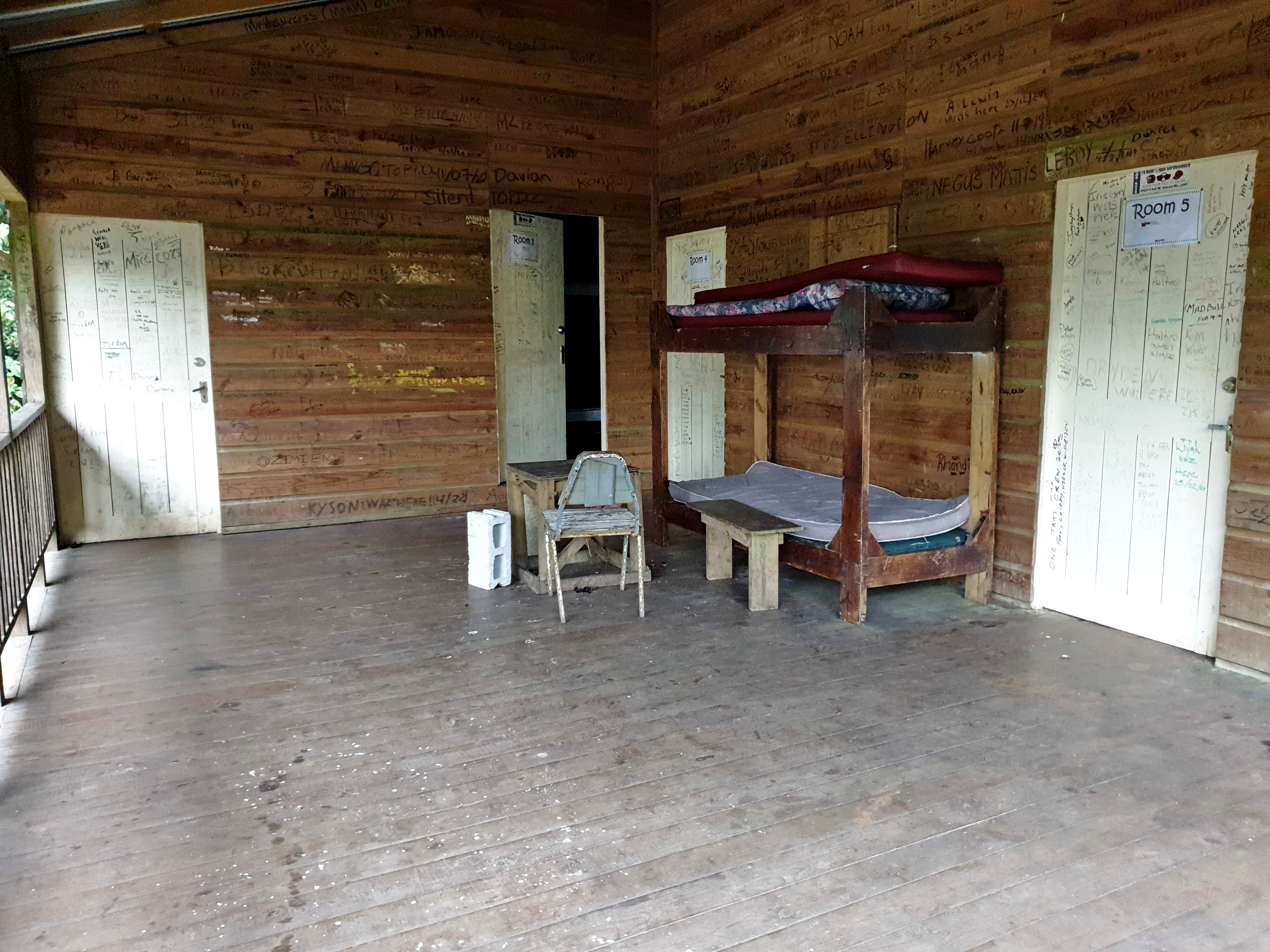 Согласно табличке, его построили из частей старого шелтера, но сделали его менее удобным, поскольку в 2015 году этому месту присвоили статус Объекта Всемирного Наследия ЮНЕСКО. А по его правилам необходимо исключить возможность длительного пребывания большого количества людей. Т.е. приходить смотреть можно, но турбазы на территории быть не должно.