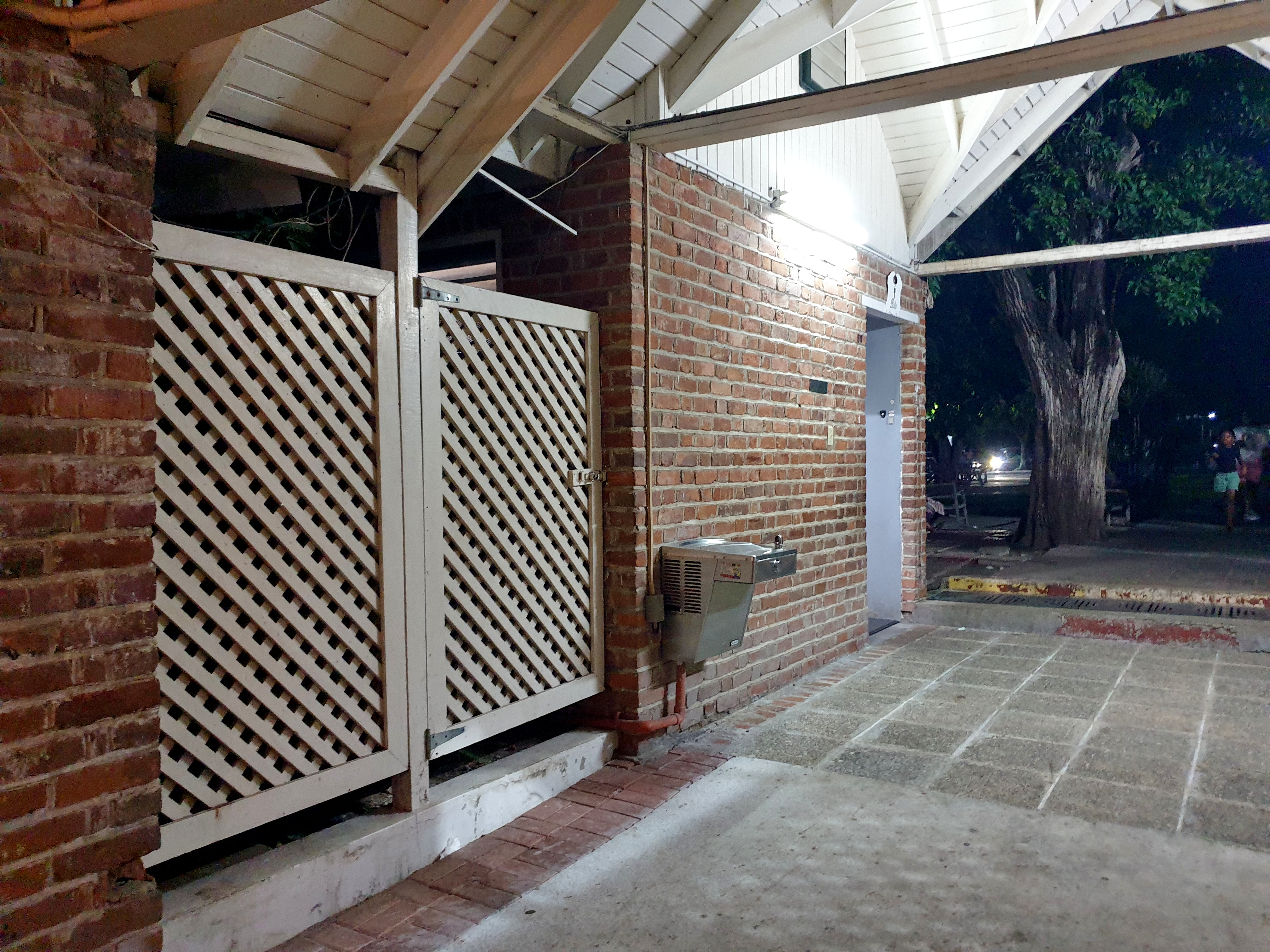 Пока я это всё фотографировал в темноте, ко мне подошёл охранник и спросил: “Вы тут работаете?”. Вопрос подразумевал, что я прокатчик, приехавший на монтаж оборудования, или скорее администратор, фотографирующий на какой стадии сейчас процесс. Оказалось, что через пару дней тут будет большое мероприятие — музыка и танцы.Но, наверное, самое удивительное за всю поездку по Ямайке — это вечером последнего дня найти в парке питьевой фонтанчик: